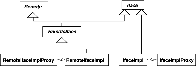 Again, the proxy class has to be created by running the rmic compiler.