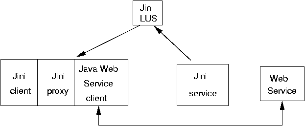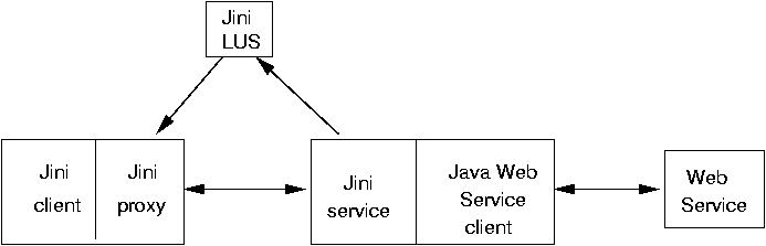 Bridging between different types of services is not an easy matter as there are many complex issues to be considered. Nevertheless, it is possible to build upon work performed to build Java Web Services and their Java clients. This allows us to use Jini services and clients in a relatively simple manner.