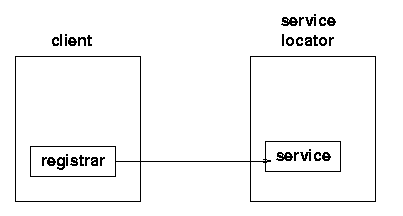What the service does with the registrar is to register the service with the lookup service. This involves taking a copy of the service, and storing it on the lookup: